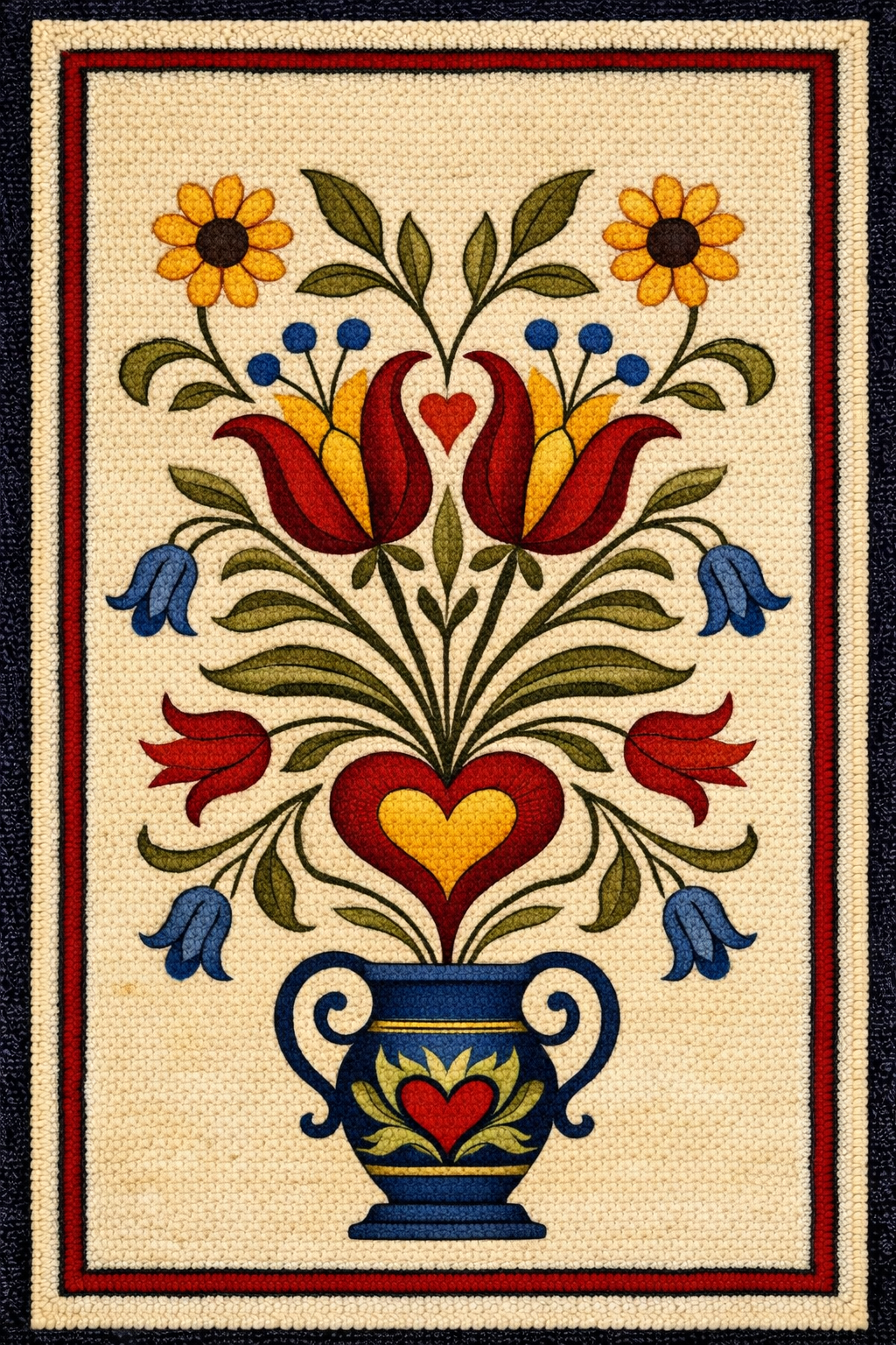 Pennsylvania Dutch Fraktur Floral #2 pattern is on linen.